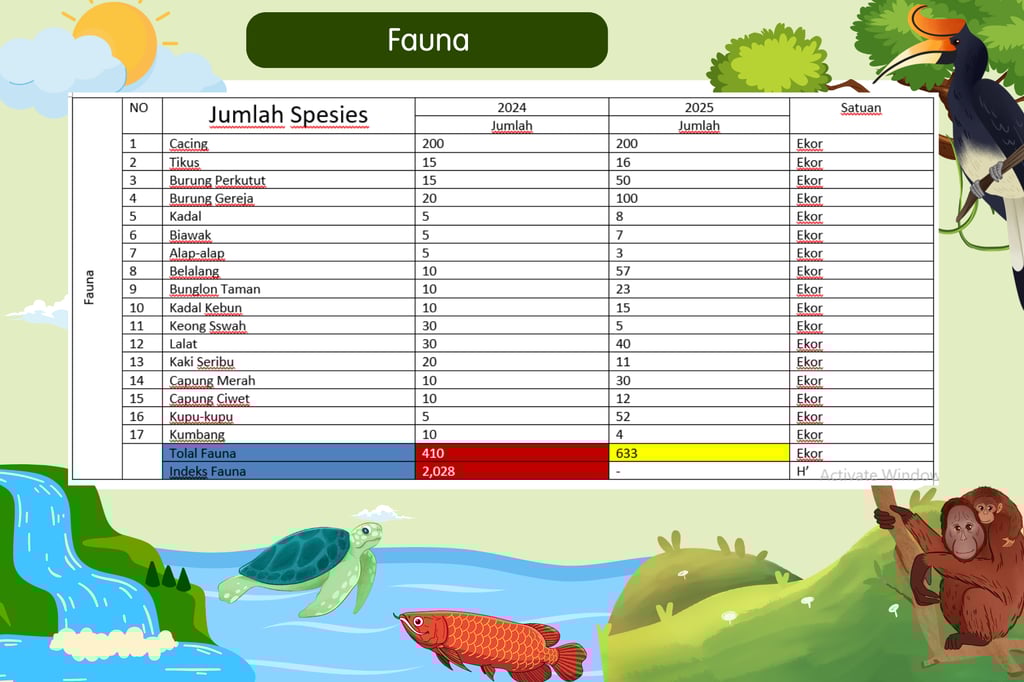 PT Pertamina Integrated Terminal Pontianak terus melakukan pendataan keanekaragaman hayati dan melaksanakan program reboisasi di Kampung Gambut Siantan Hilir sebagai bagian dari komitmen menjaga keberlanjutan ekosistem gambut. Berdasarkan pendataan flora selama satu tahun terakhir hingga 2025, tercatat sebanyak 3.617 batang flora dari berbagai jenis tanaman, mulai dari pohon, tanaman buah, tanaman pangan, hingga vegetasi liar. Selain pendataan tersebut, pada tahun ini Pertamina IT Pontianak juga melaksanakan kegiatan reboisasi melalui penanaman 100 bibit pohon jelutung sebagai upaya memperkuat vegetasi di tepi jalan dan melestarikan ekosistem gambut. Inisiatif ini menegaskan peran Pertamina dalam menjaga potensi ekologis kawasan serta memperkuat upaya konservasi lingkungan secara berkelanjutan.